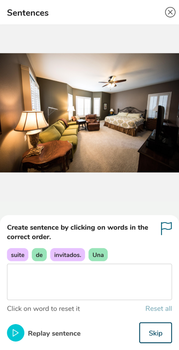 Uma jornada dinâmica de quatro etapas, da audição à fala! Ouça, reorganize as palavras, escreva e grave a mesma frase. Na próxima vez, você saberá, temos certeza. Adquira o idioma, uma frase de cada vez.